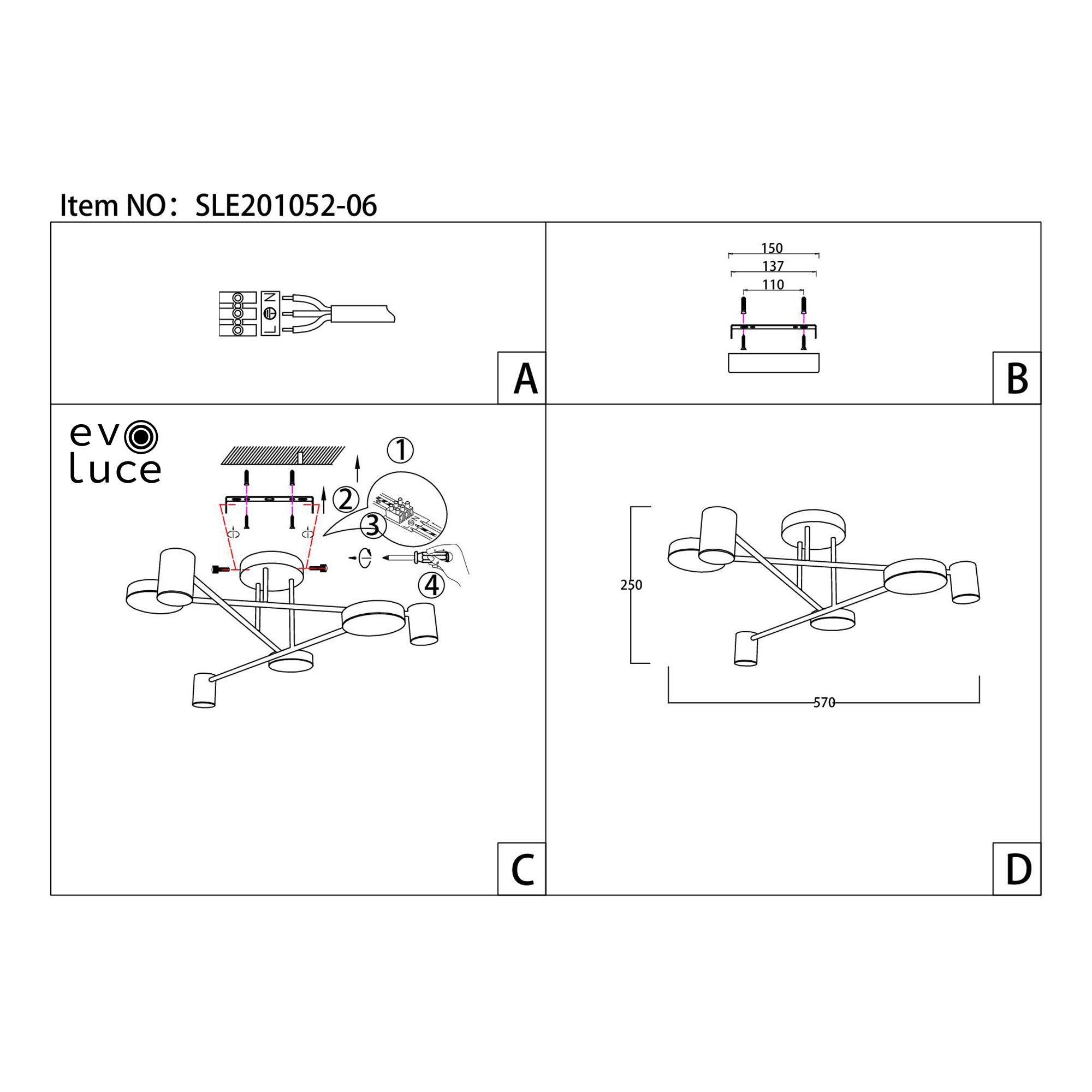 | Альтернативное название | SLE201052-06 Светильник потолочный Белый/Белый LED 6*7W 4000K NOBEL |